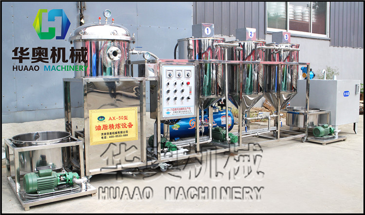 為滿足中小油坊的需要,華奧公司成功開發(fā)出專門用于【中小型油坊食用油精煉的小型成套生產(chǎn)線】,是針對中小油坊油脂精煉的一次重大變革,是一次油脂精煉的技術(shù)革新。實(shí)現(xiàn)了【脫磷、脫膠、脫水、脫色】一體化流水作業(yè),從而實(shí)現(xiàn)了大型煉油小型化,其核心技術(shù)是在傳統(tǒng)的精煉技術(shù)上,簡化各項(xiàng)繁瑣復(fù)雜的設(shè)備和操作,并且增加精濾。使其操作簡單、方便。如今,華奧中小型油脂精煉設(shè)備正不斷走進(jìn)中小型油坊,深受廣大用戶好評。油品質(zhì)量可達(dá)國家壓榨二級食用油標(biāo)準(zhǔn),可直接灌裝裝桶銷售。